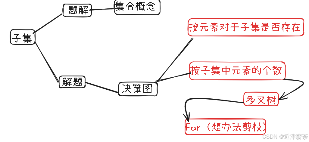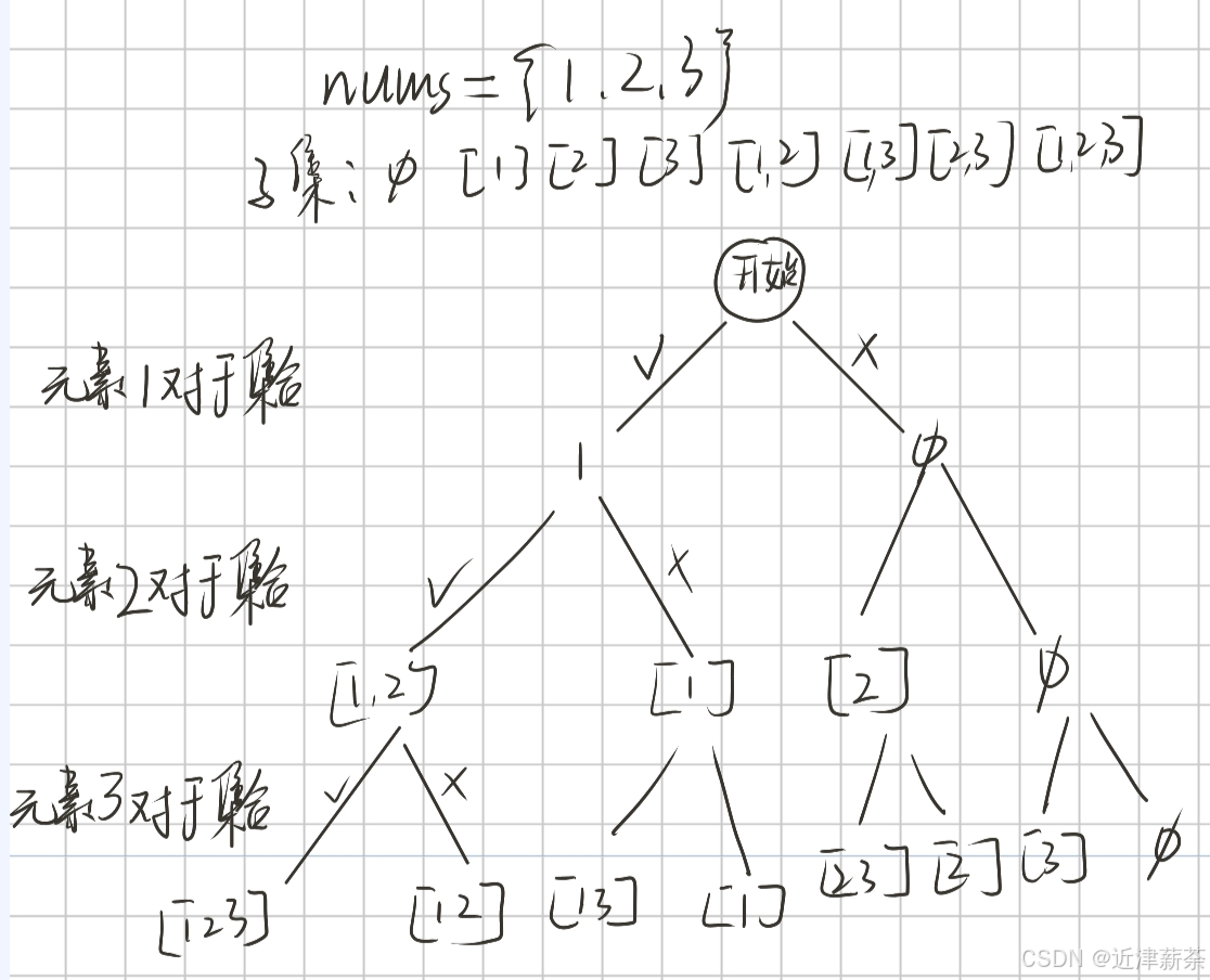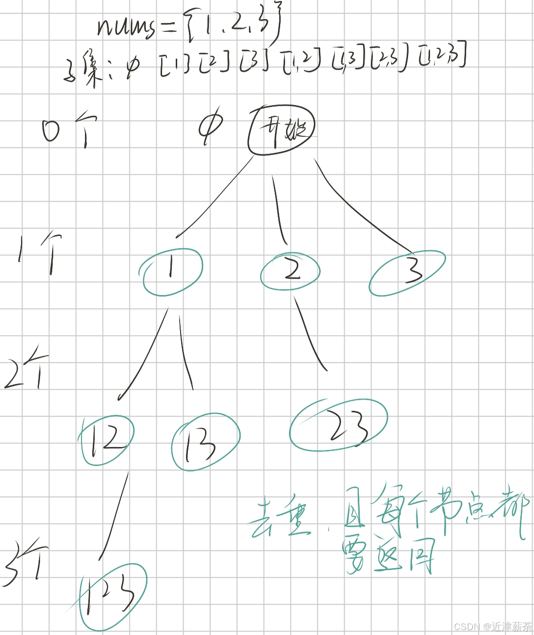由于子集种没有排序,只有组合,所以我们要对重复的子集进行剪枝 ,如图中所示:按照顺序来给path添加元素