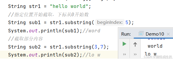 | substring(int begin) | 从指定索引开始截取子串到末尾 |