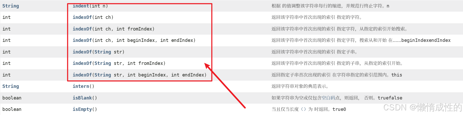 // int indexOf(int ch,int fromIndex)返回ch在字符串中第一次出现的位置,从fromIndex开始查找