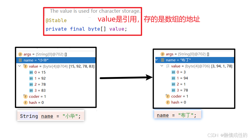 String类就是字符串(例:字符串"ABC小+#",字符是 '1' ),其为引用类型,内部并不存储字符串本身,不可变即不可更改