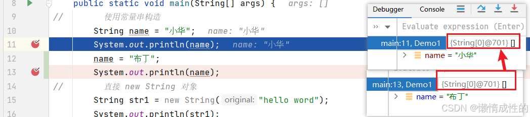 创造String对象,是和常量的String,地址不相等的,是两个String引用的不同地址String str1 = new String("狗");//String[0]@111