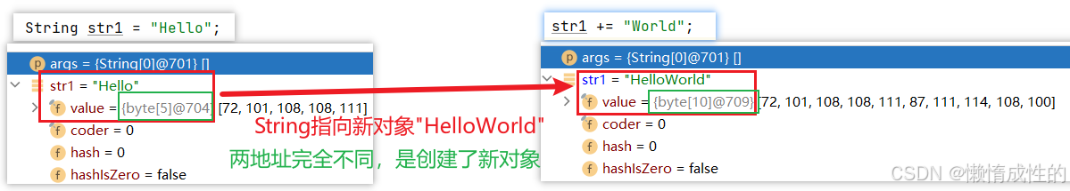 System.out.println("str1.equals(str2):"+str1.equals(str2));//("hello"≠"world")false
