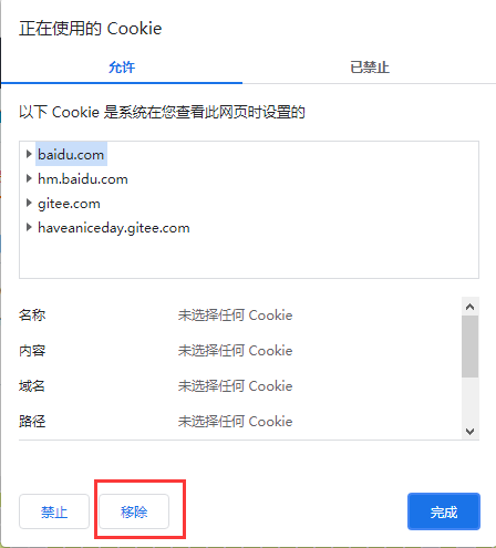 然后移除已经存在的Cookie