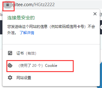 在码云⻚⾯上,点击url左侧的图标,选择Cookie