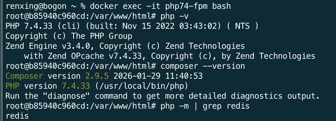 docker exec -it php74-fpm bash