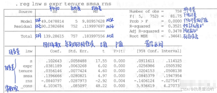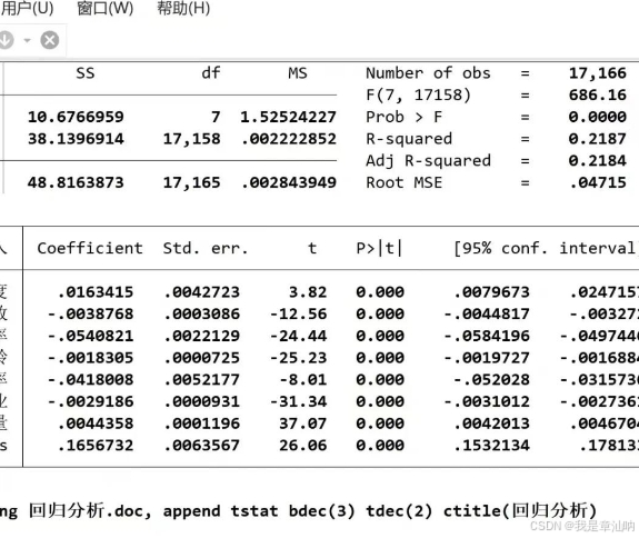 - p值(P>|t|):判断系数是否显著,一般p<0.05就说明显著