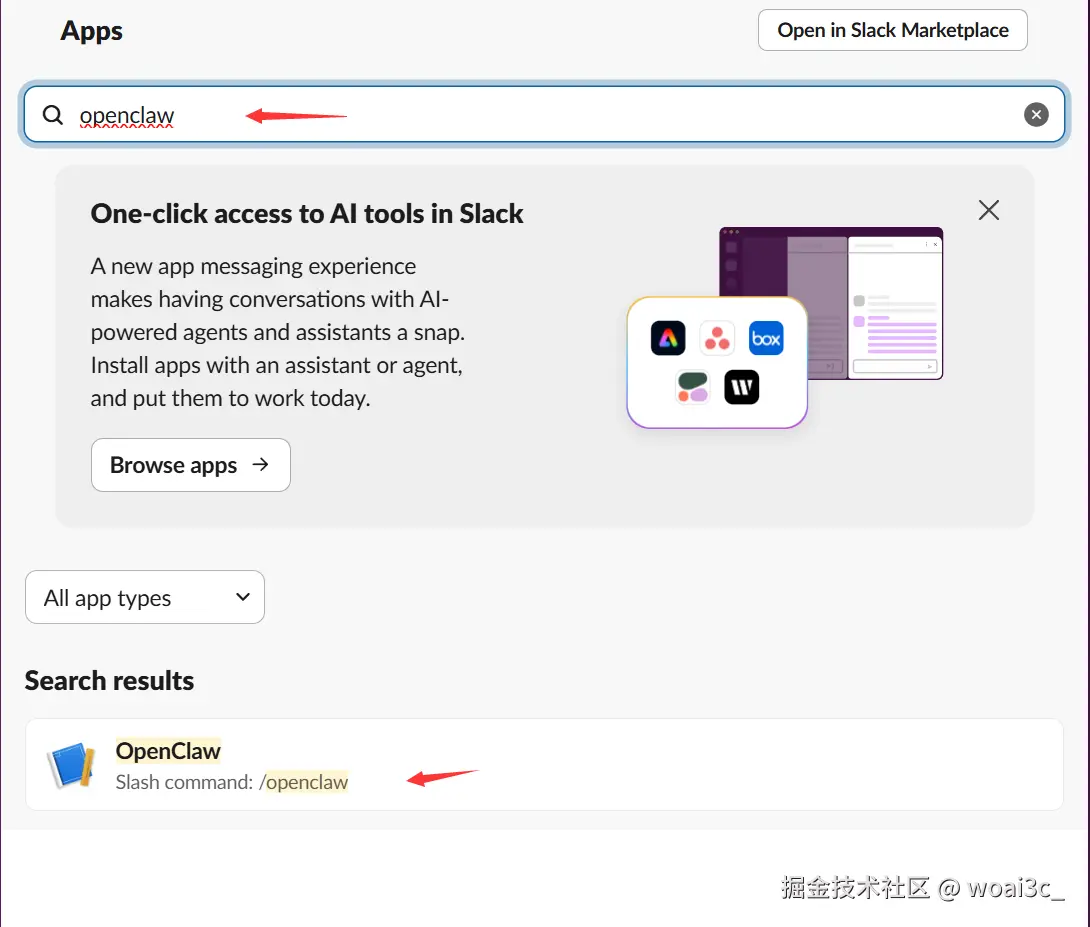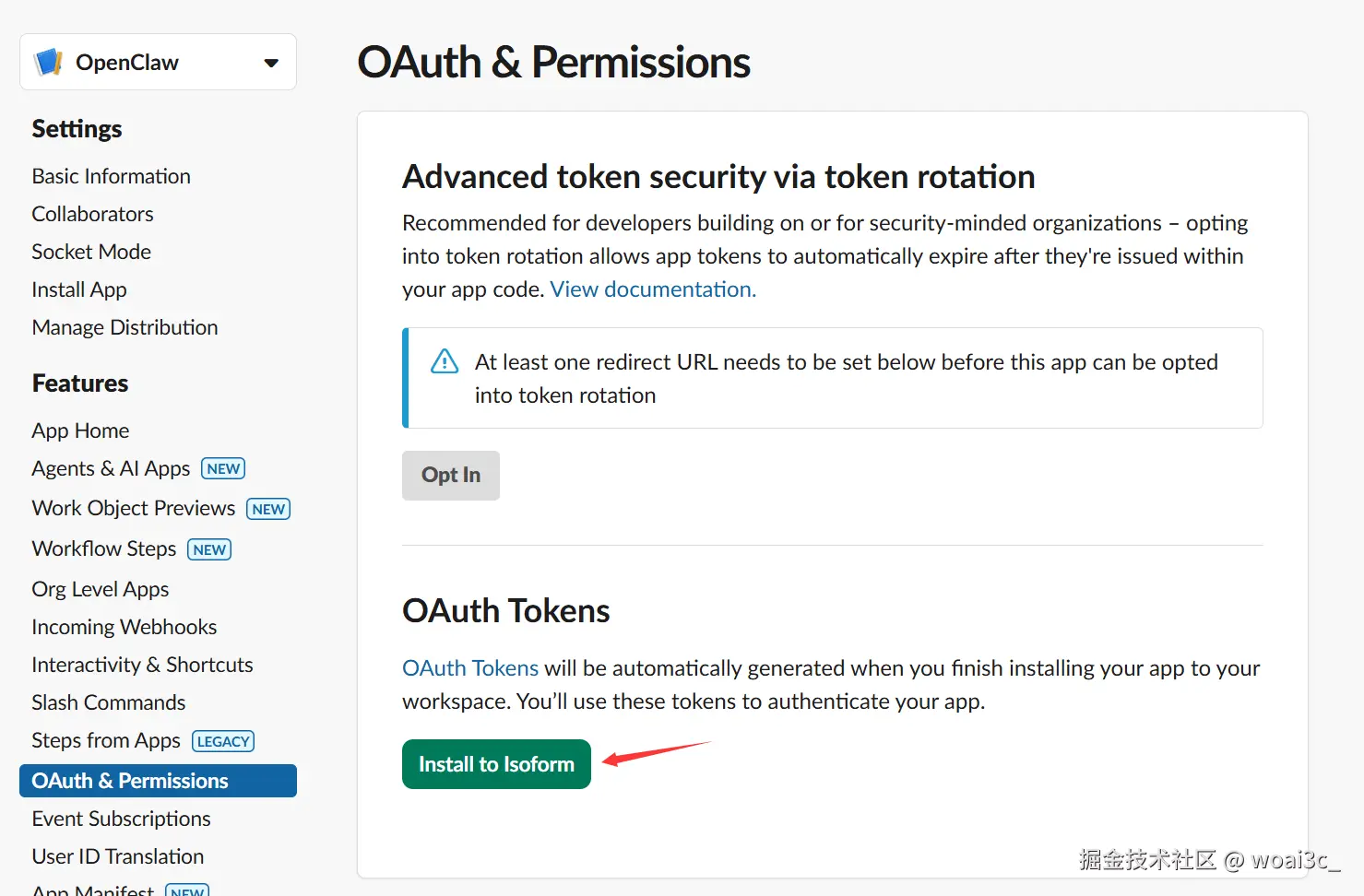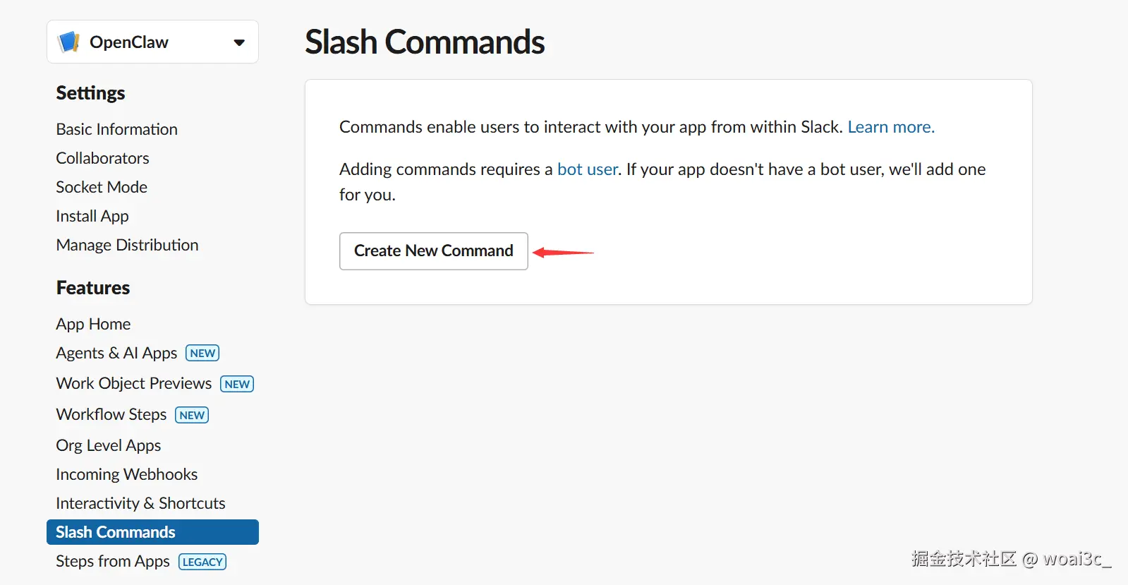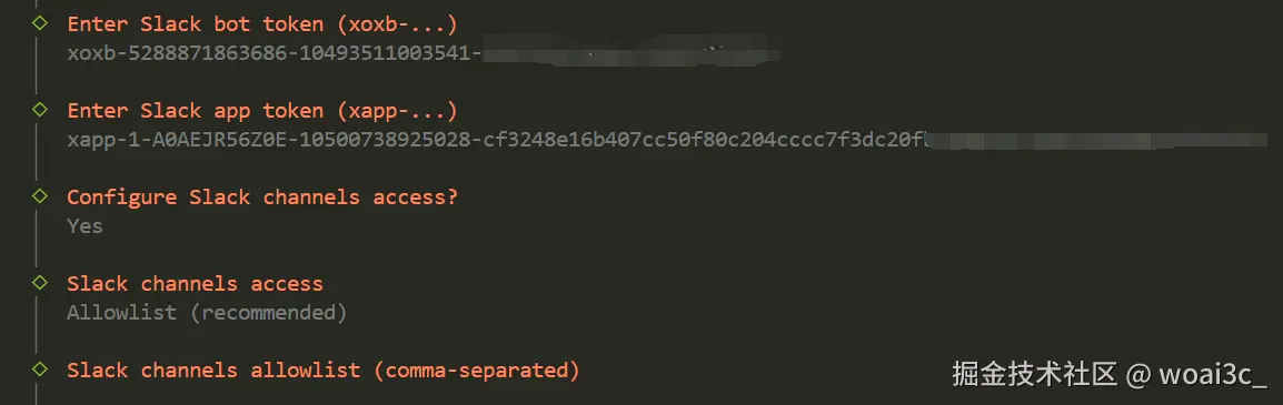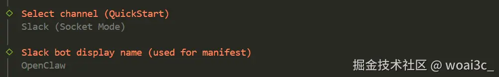 在第 2.4 步选择 Slack 后,向导会提示你先去 Slack API 控制台创建 App 并获取 Token。以下是详细步骤: