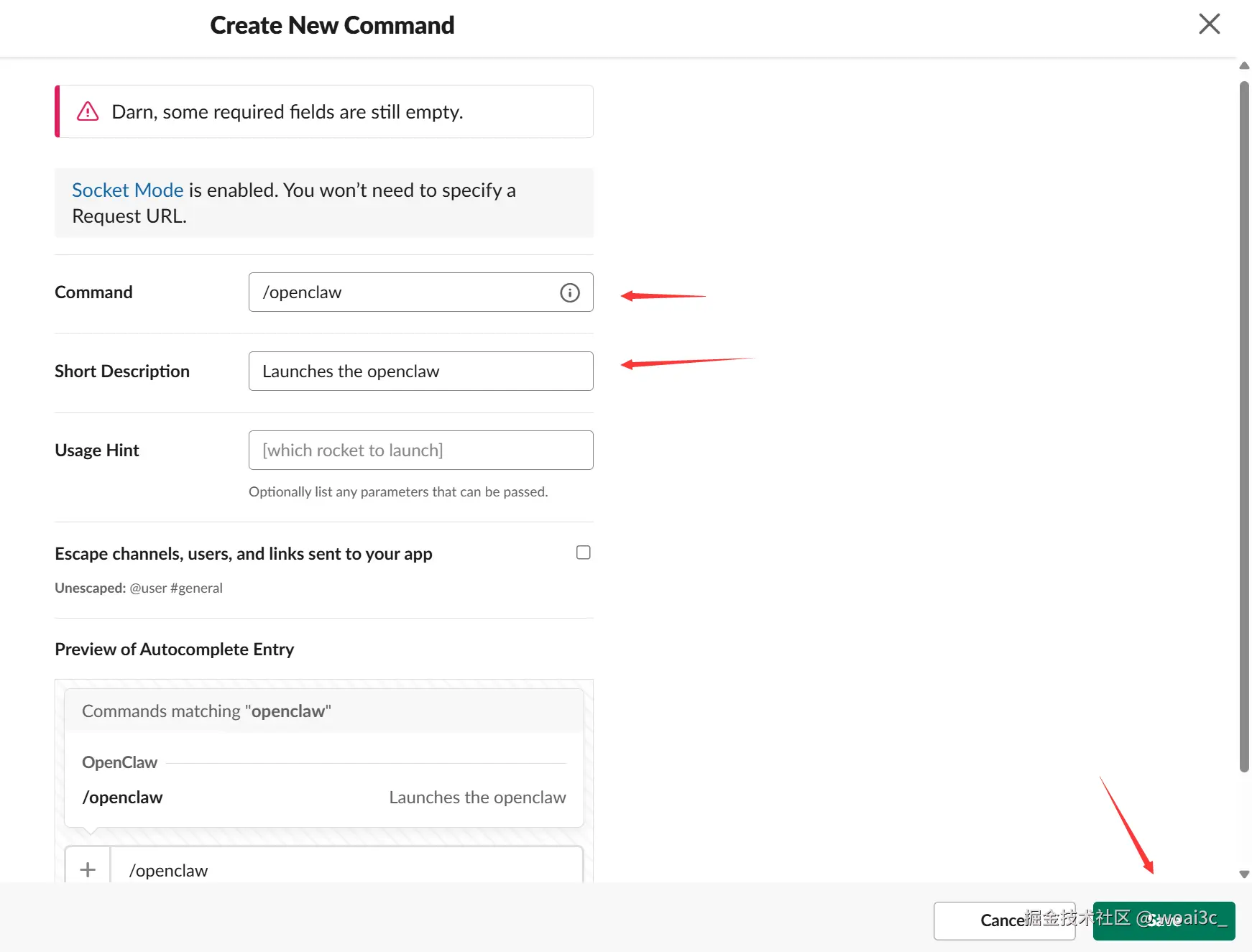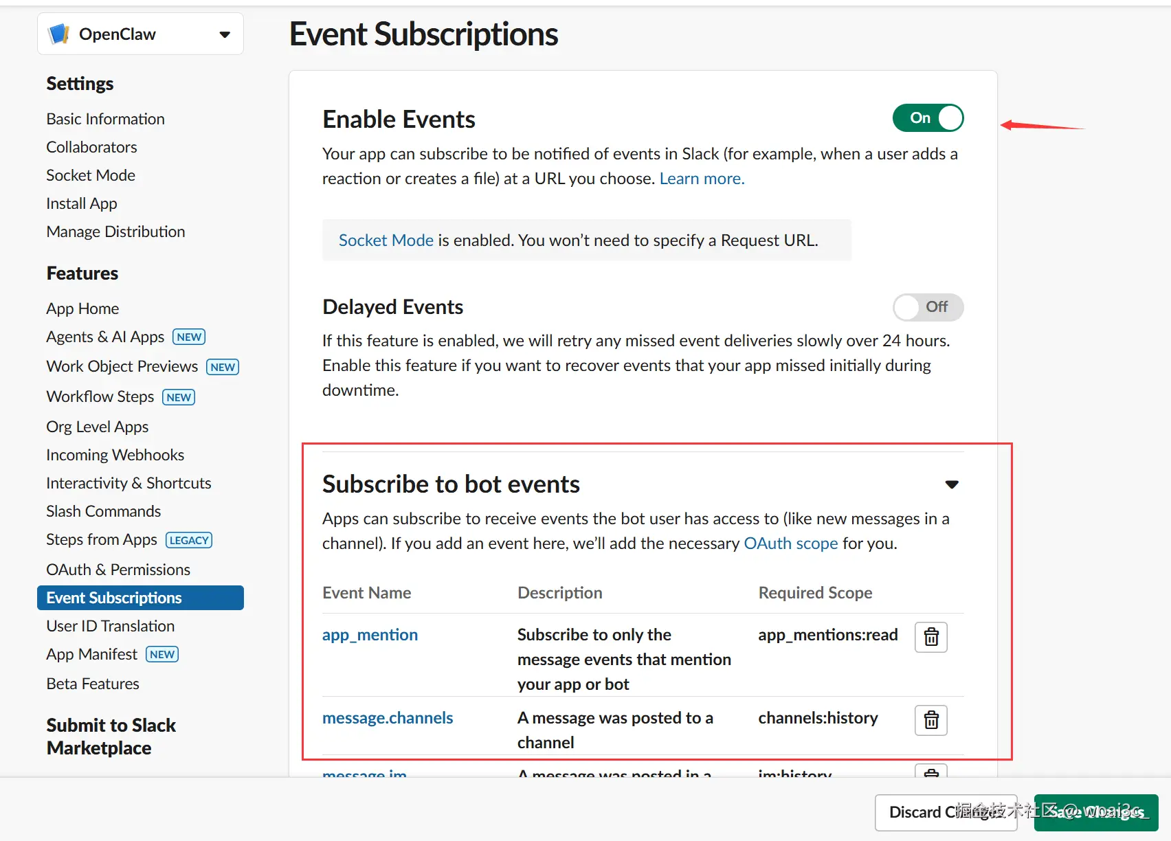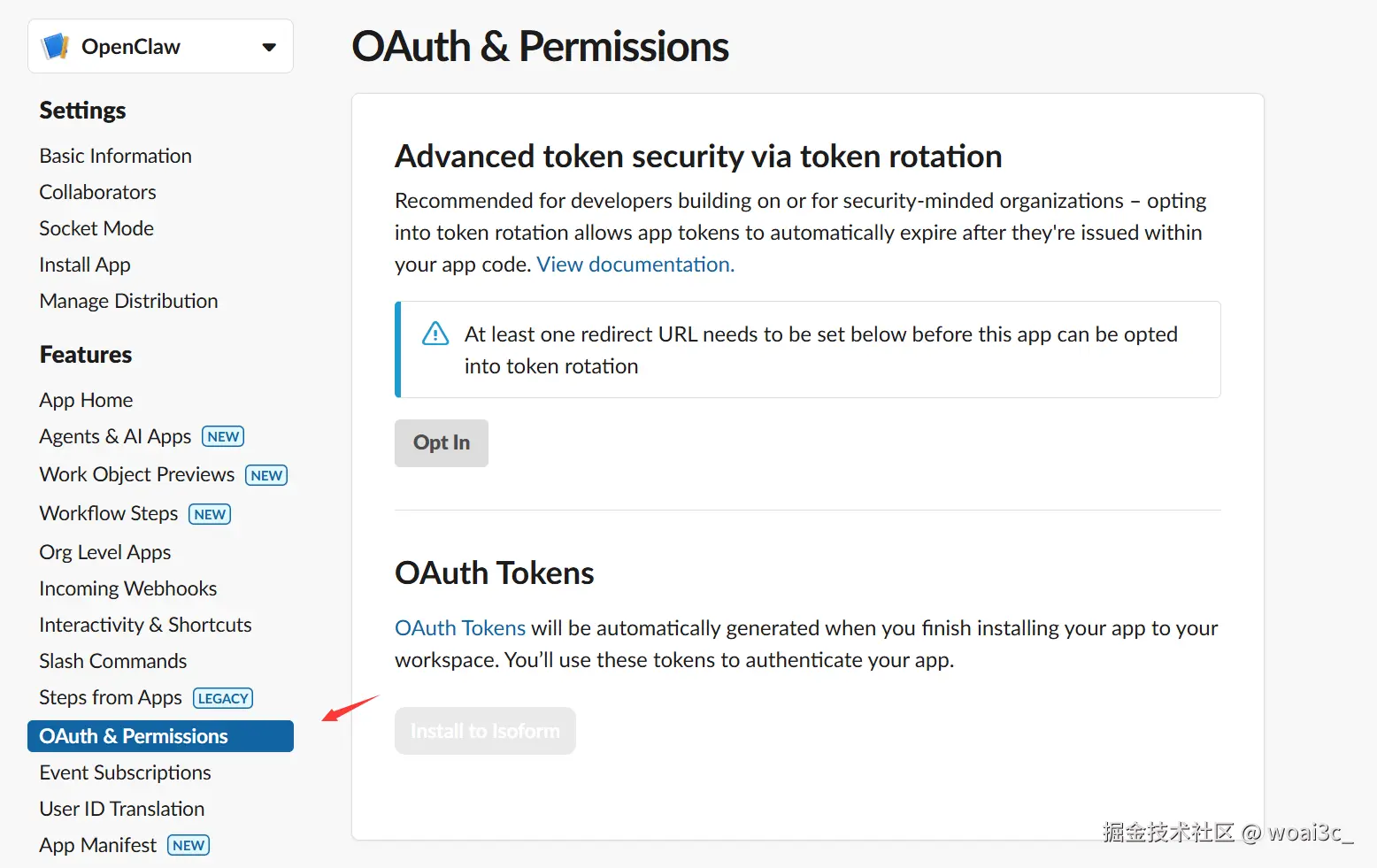 在第 2.4 步选择 Slack 后,向导会提示你先去 Slack API 控制台创建 App 并获取 Token。以下是详细步骤: