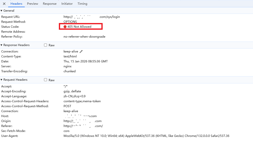 • Response Headers:看是否有 Allow 字段(这个字段会告诉你服务器允许的方法,比如 Allow: POST, PUT)