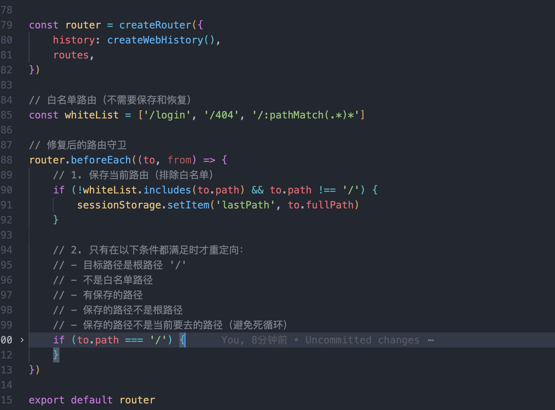 // 1. 保存当前路由(排除白名单)