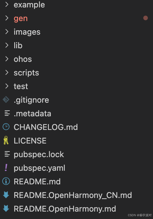 上图展示了项目的整体文件组织方式,lib/目录存放Dart层代码,ohos/目录存放ArkTS原生插件代码。