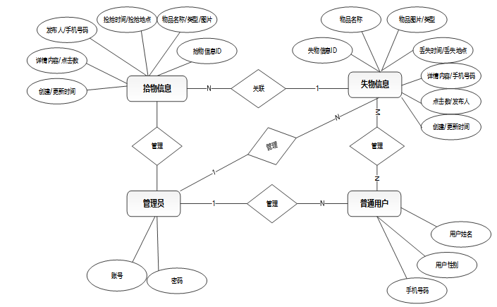 (1)失物与拾物信息管理模块:系统提供全面的失物与拾物信息发布、管理和查询功能。用户可以通过后台录入失物或拾物信息,并根据物品类别进行分类管理。管理员可以在后台查看和管理这些信息。系统支持多种操作,如发布新失物信息、编辑现有信息、删除已解决的失物记录等。普通用户拾物者可发布拾物信息,失主则可以查询或通过留言联系拾物者。