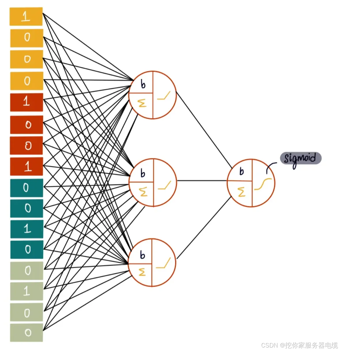 ● 输出层:最终结果(e.g., softmax 概率)。