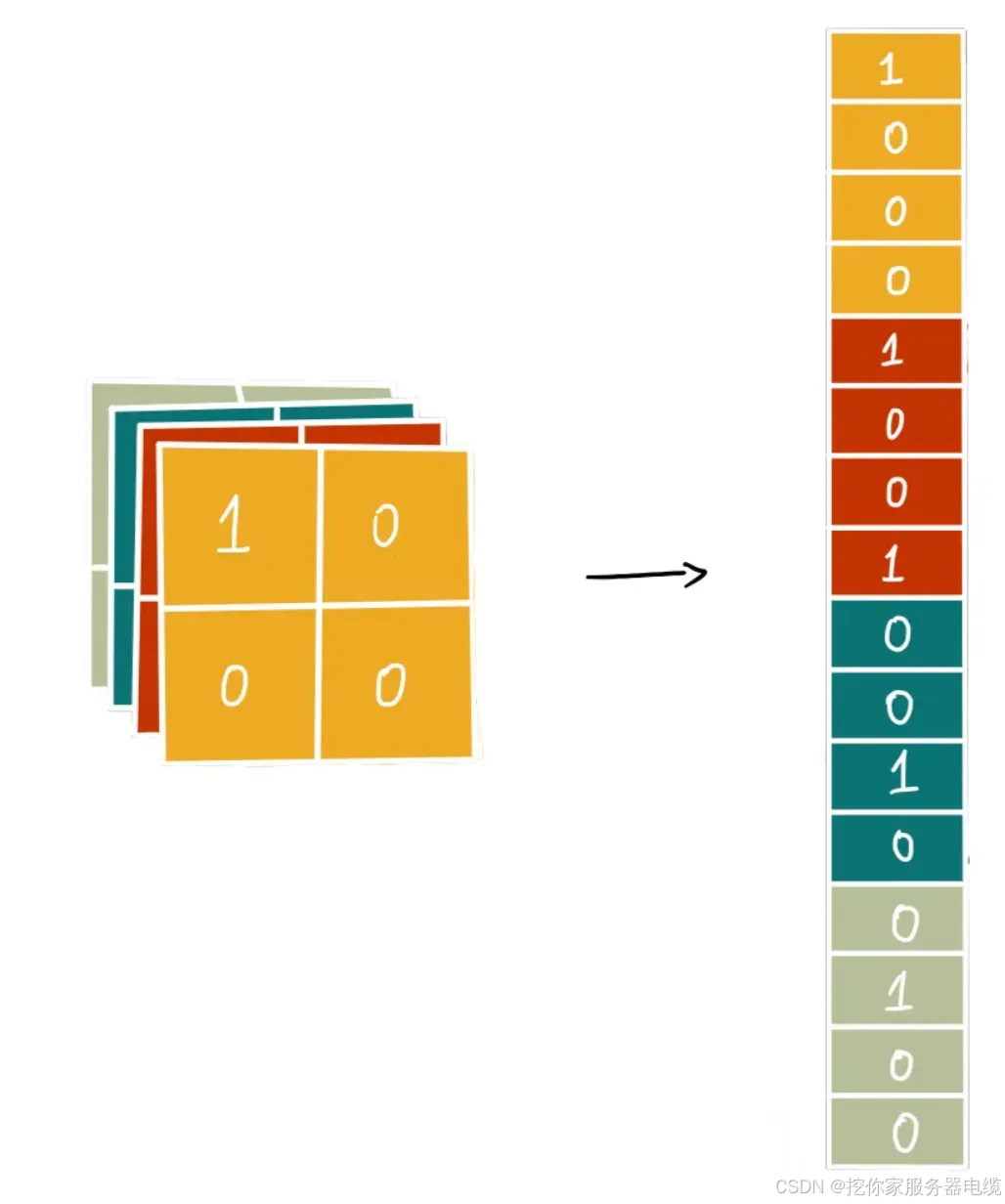 ● 全连接层(Fully Connected, FC):把特征图扁平化,全连到输出,像大矩阵乘法整合全局特征。参数多,常在后半部分。