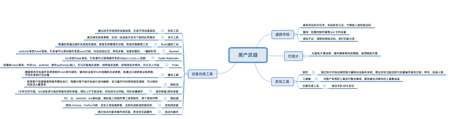 黑产攻击的专业化进程,核心驱动力是攻击工具的持续迭代升级,且工具迭代速度与风控技术形成直接对抗态势。当前黑产常用的核心攻击工具可分为四大类:一是设备伪造工具,这是黑产批量操作的基础工具,如改机工具可修改设备IMEI、MAC等核心信息生成虚假设备指纹,硬改工具通过自定义ROM固件随机生成设备参数,群控工具可通过一台电脑远程控制数百台移动设备,实现标准化批量操作;二是账号验证工具,用于突破平台账号注册与验证环节的限制,如猫池设备可批量插入、控制管理数百张SIM卡,接码平台通过对接大量手机号资源,自动读取并分发短信验证码,快速完成批量账号的注册与验证;三是系统篡改工具,用于获取设备最高权限并修改业务逻辑,如Root(安卓)、越狱(iOS)工具可突破系统权限限制,Xposed(安卓)、Cydia Substrate(iOS)等Hook框架可拦截并修改APP运行代码,实现自动抢红包、一键新机、跳过风控检测等作弊功能;四是环境模拟工具,用于构建虚假的业务访问环境,如模拟器可在电脑上模拟移动设备运行环境并预装作弊软件,定制浏览器可修改User-Agent、Cookie等内核参数伪造真实用户访问痕迹,自动化脚本可按预设逻辑实现浏览器的批量注册、登录、交易等操作。