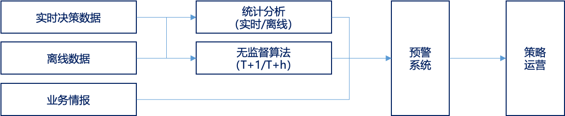 风险态势感知系统流程如上,通过多种统计方法,发现系统潜在风险,通过预警系统通知运营人员进行响应