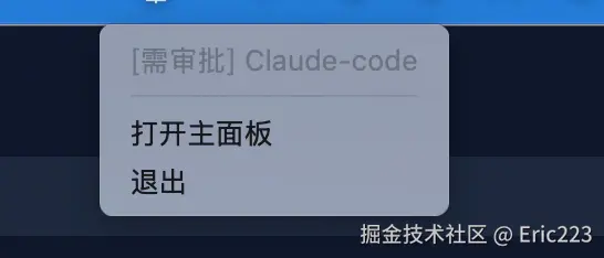 当一个任务进入 PendingApproval 状态时,你会在系统通知中心看到类似这样的提醒。点击它可以唤出这个上下文菜单,提供快捷操作: