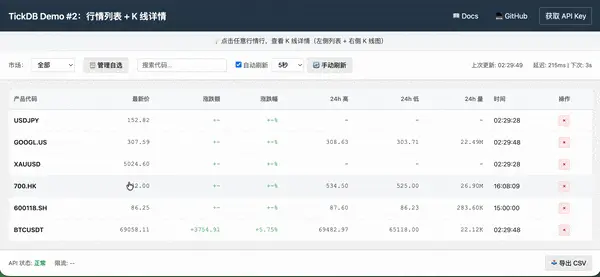 那个版本解决的是"看一眼实时行情"的问题:无论是美股、港股,还是外汇、指数,只要通过统一的行情 API 拉取数据,就可以稳定展示当前价格、涨跌幅与波动区间。