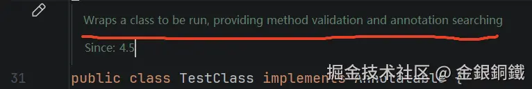 | <math xmlns="http://www.w3.org/1998/Math/MathML"> TestClass \text{TestClass} </math>TestClass | 对测试类进行封装,通过 TestClass 可以找到带有指定注解的字段/方法 | ![]() |