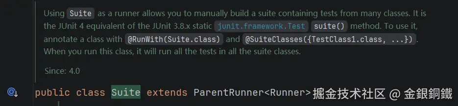 (它的精确类型是 <i>org.junit.runners.Suite</i>);