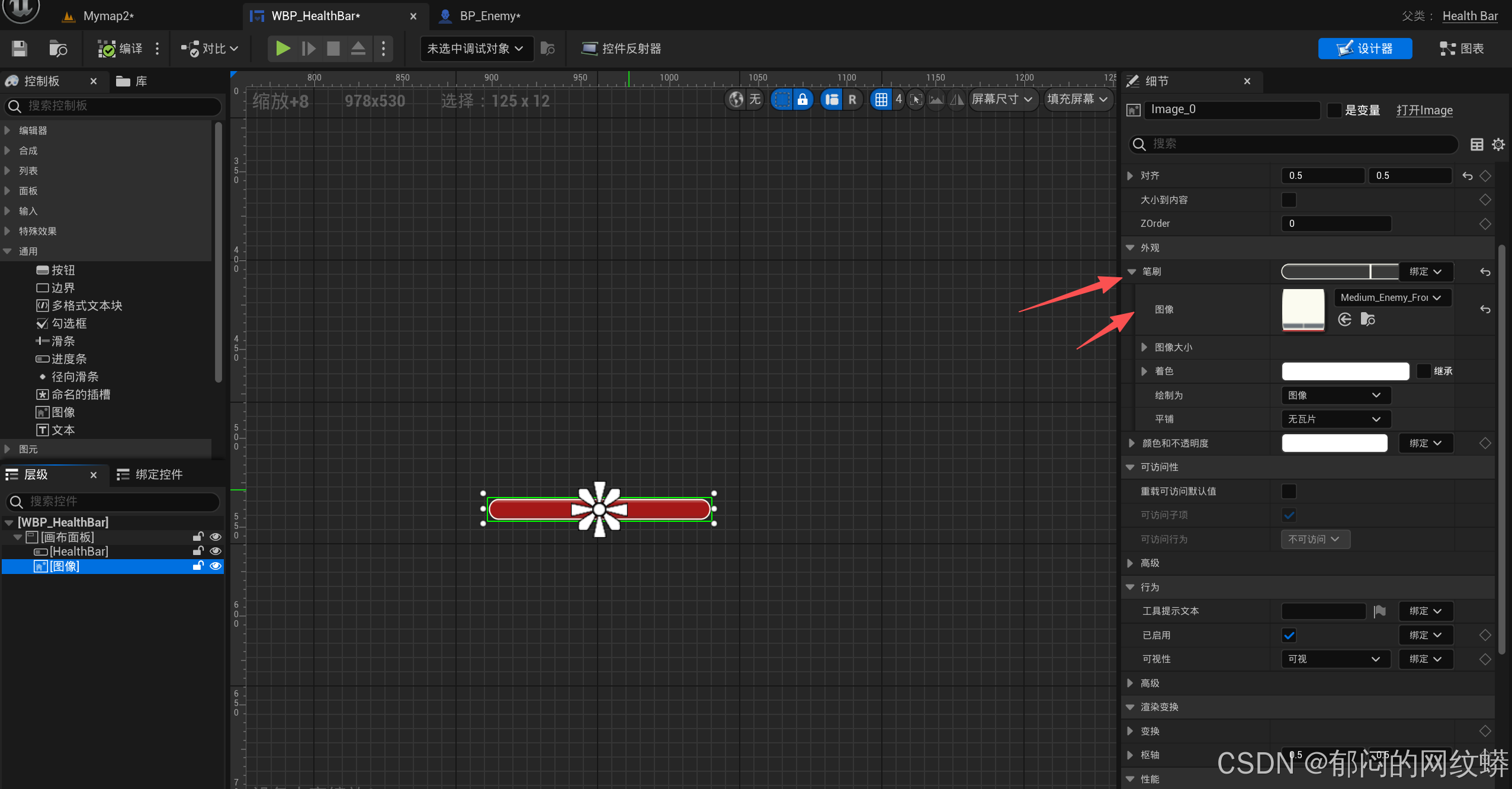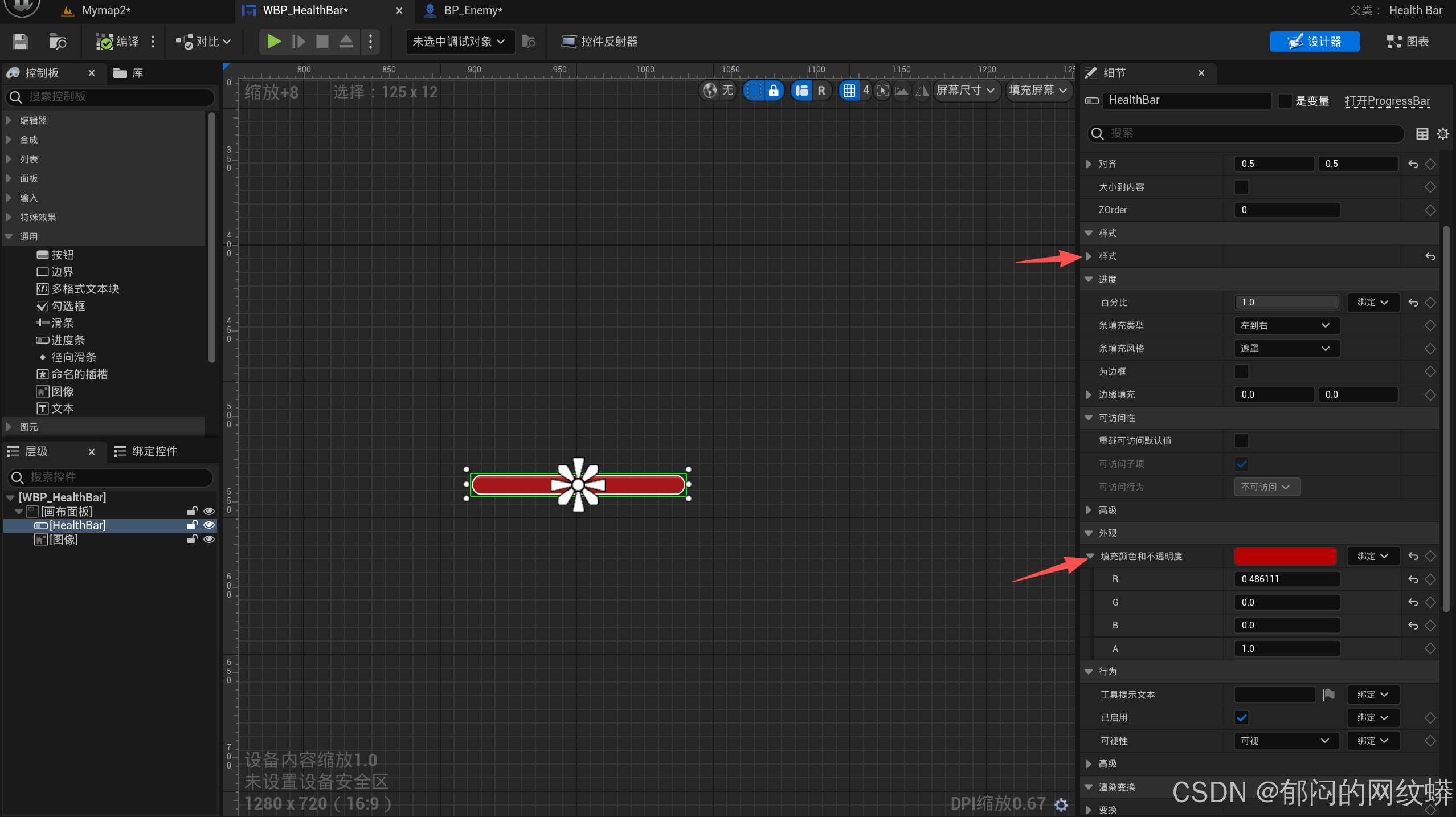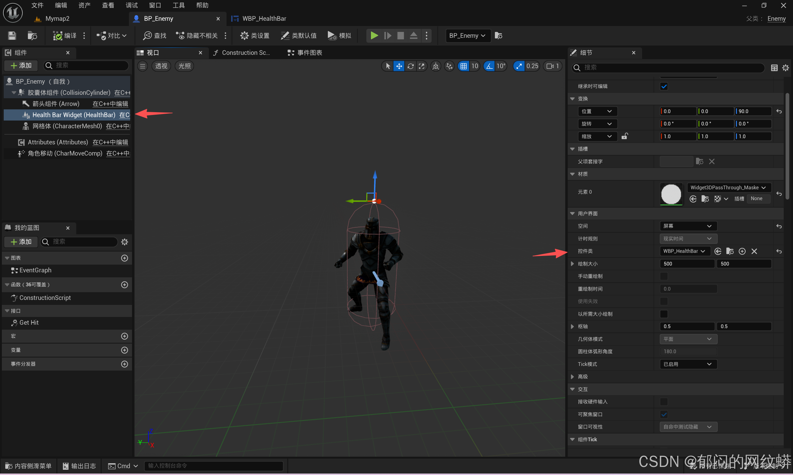 - 在敌人蓝图里面设置生命条。