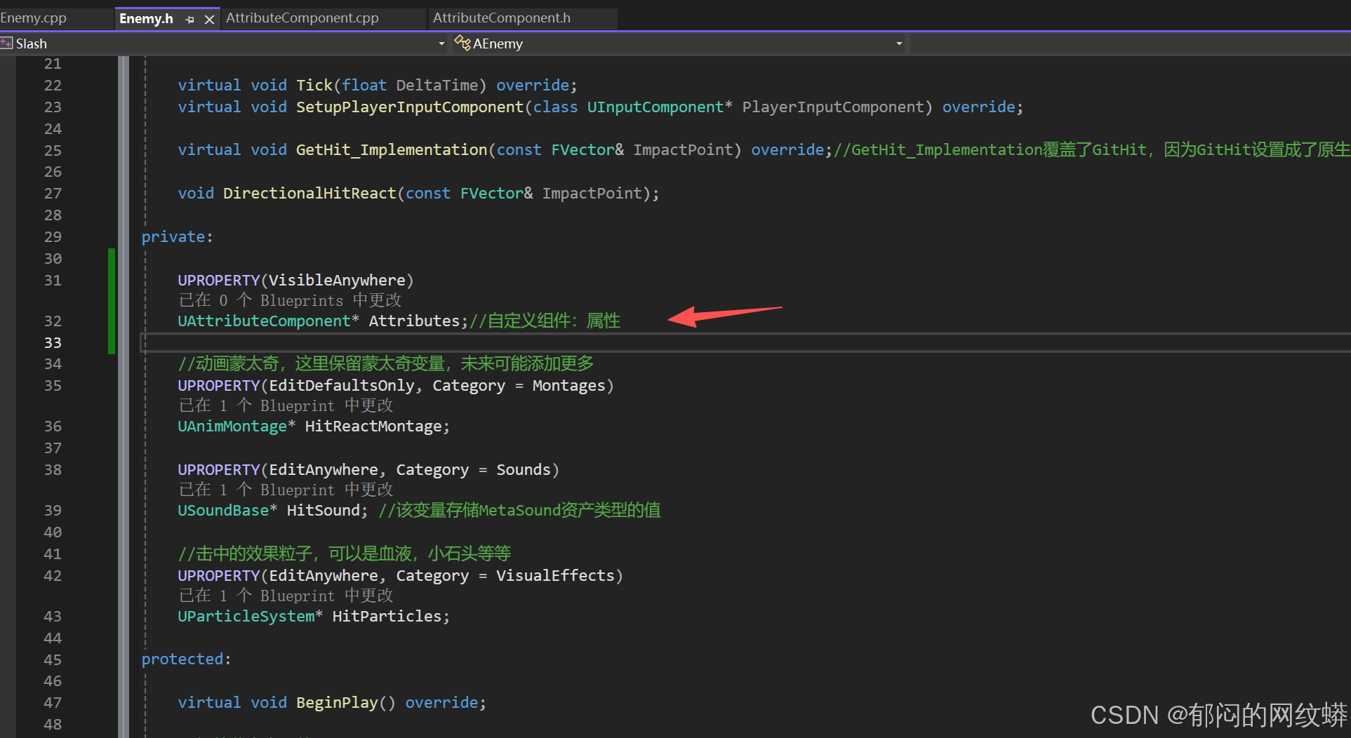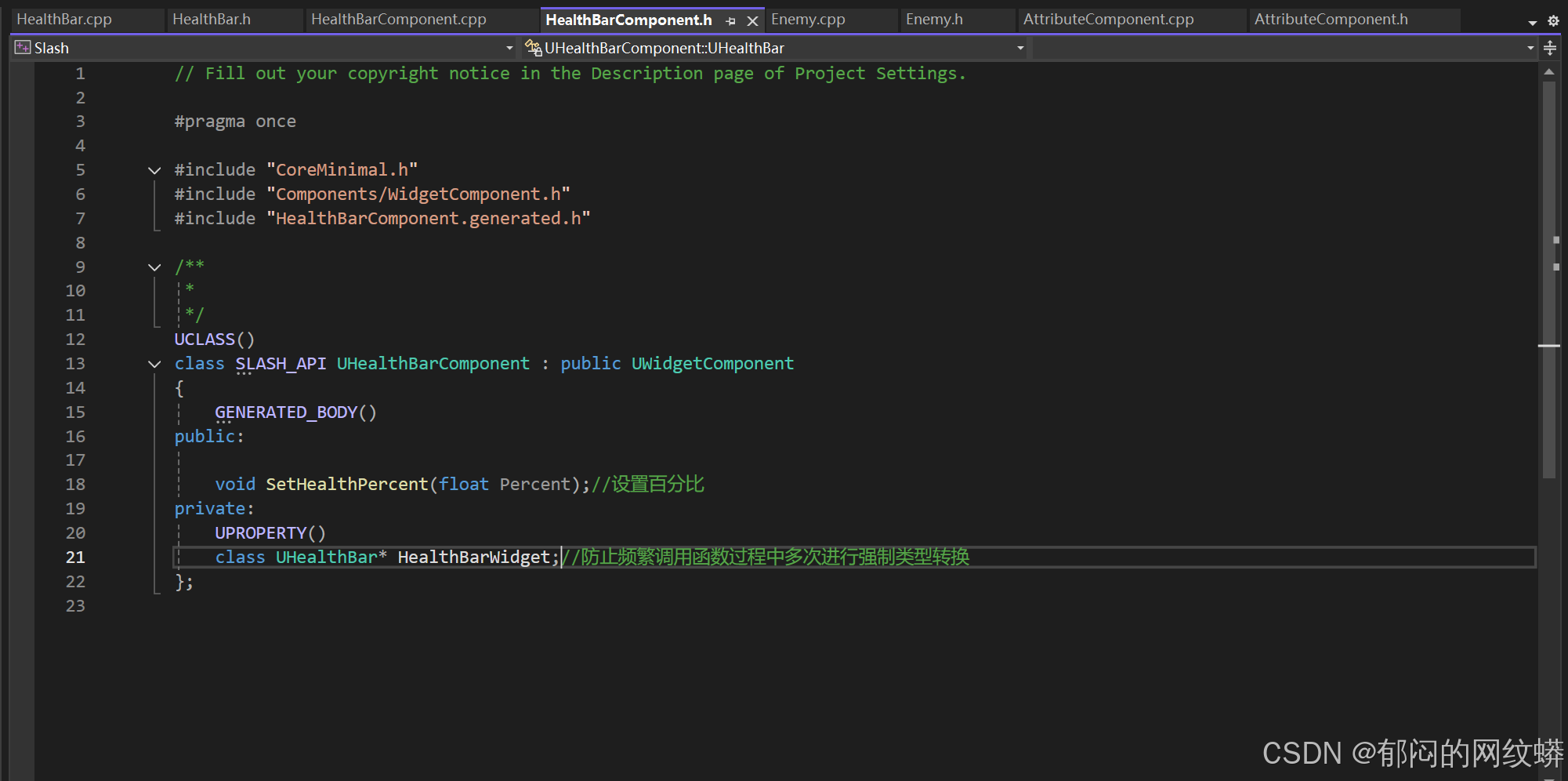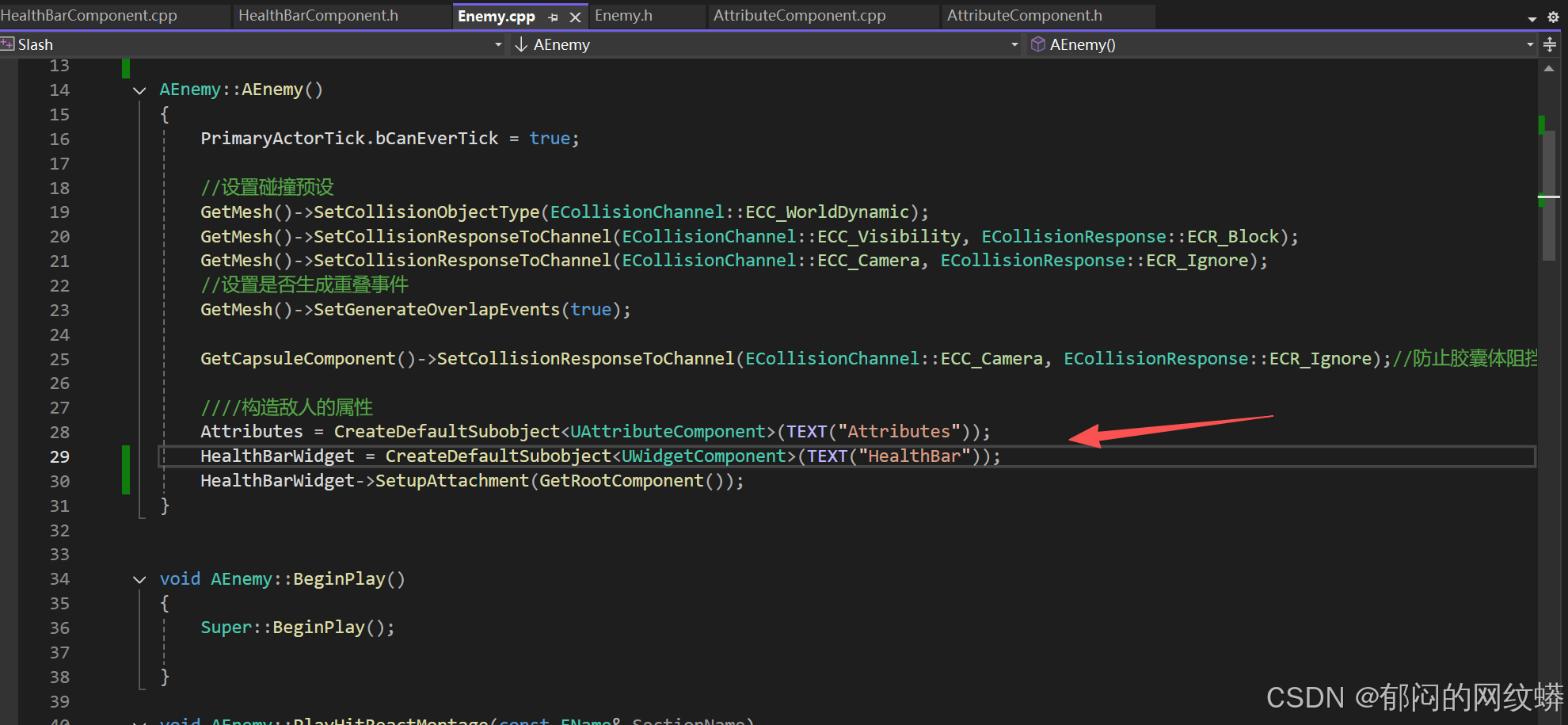 - 在敌人的C++添加控件组件,构造对象,代表生命条。