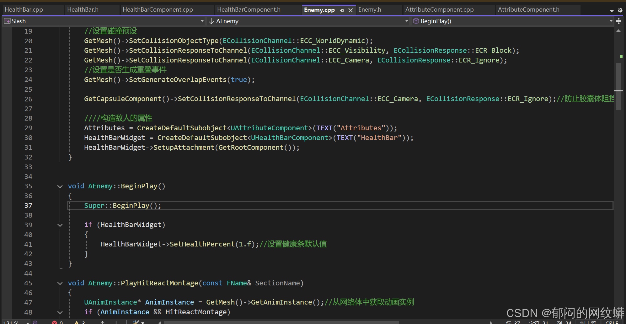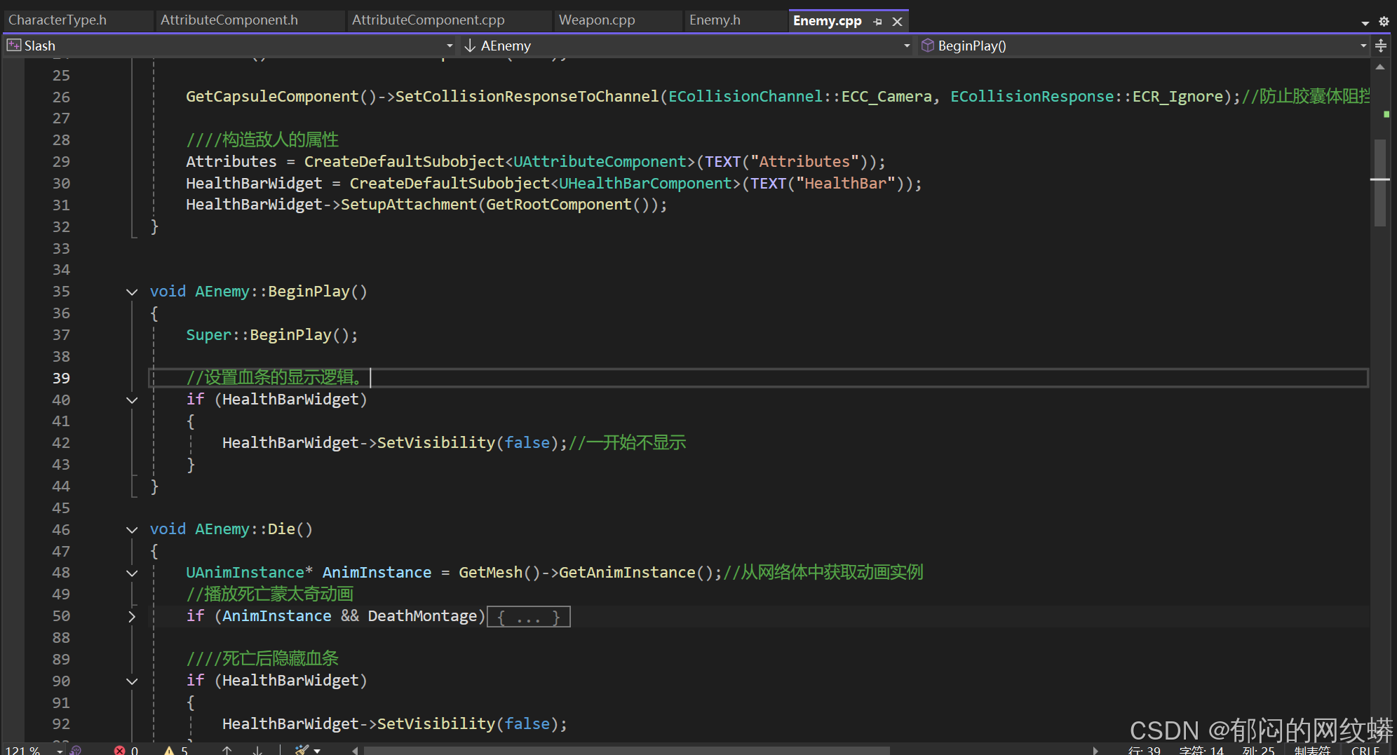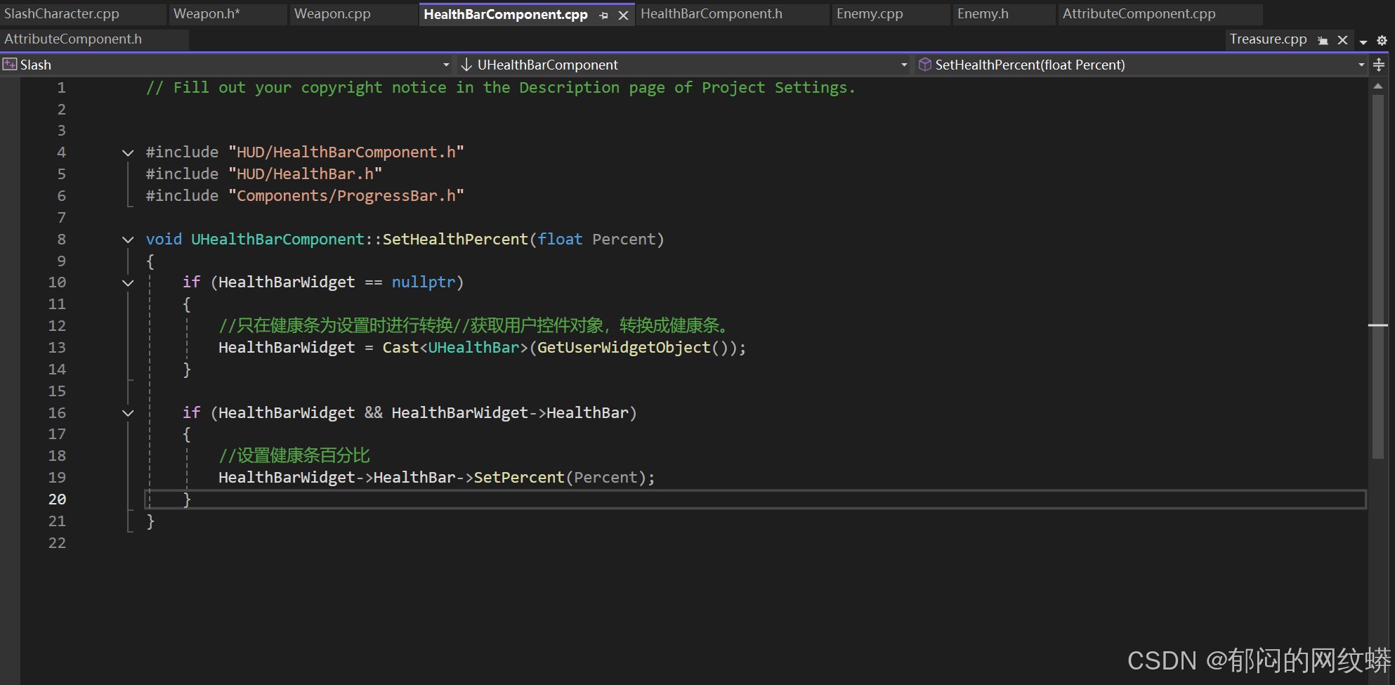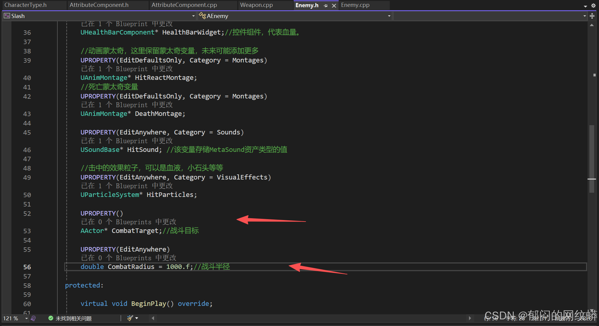 - 在敌人的C++添加控件组件,构造对象,代表生命条。