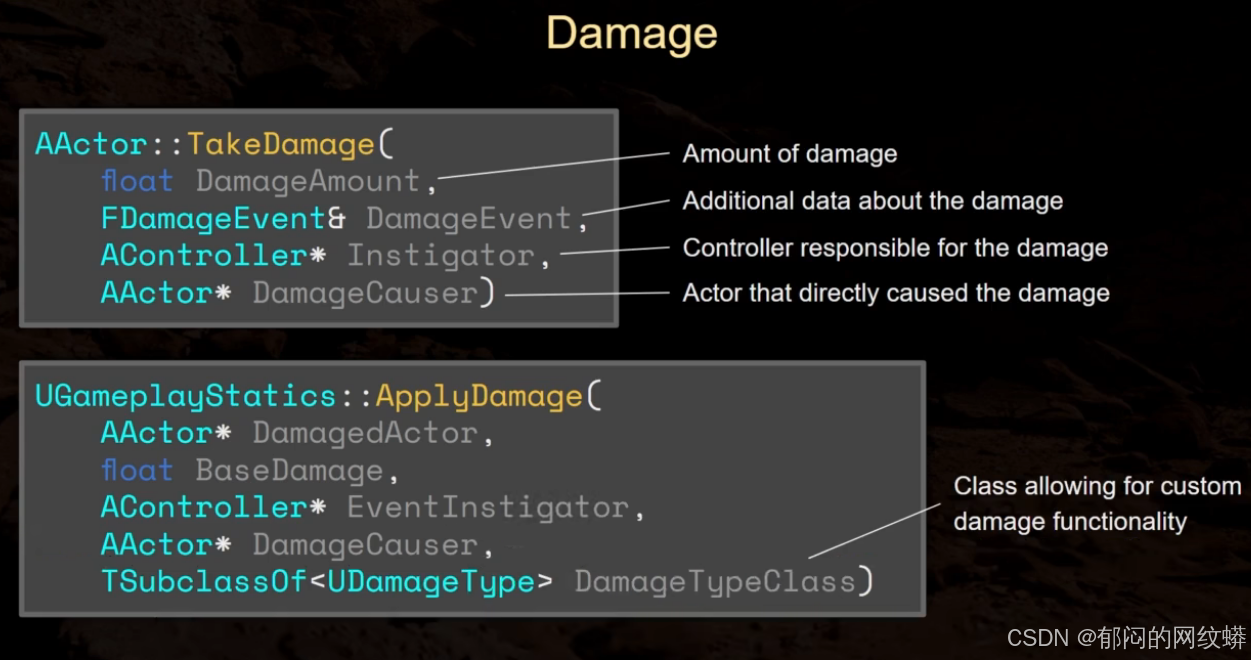 - 了解虚幻内置的伤害函数和对应参数。