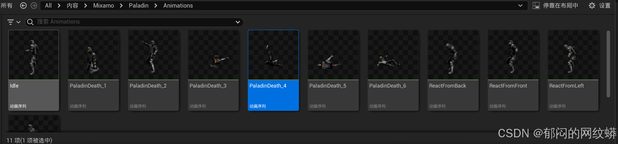 - 选择想要的几个死亡动画。按照对应格式下载,再转换成带根骨的动画。导入到项目。