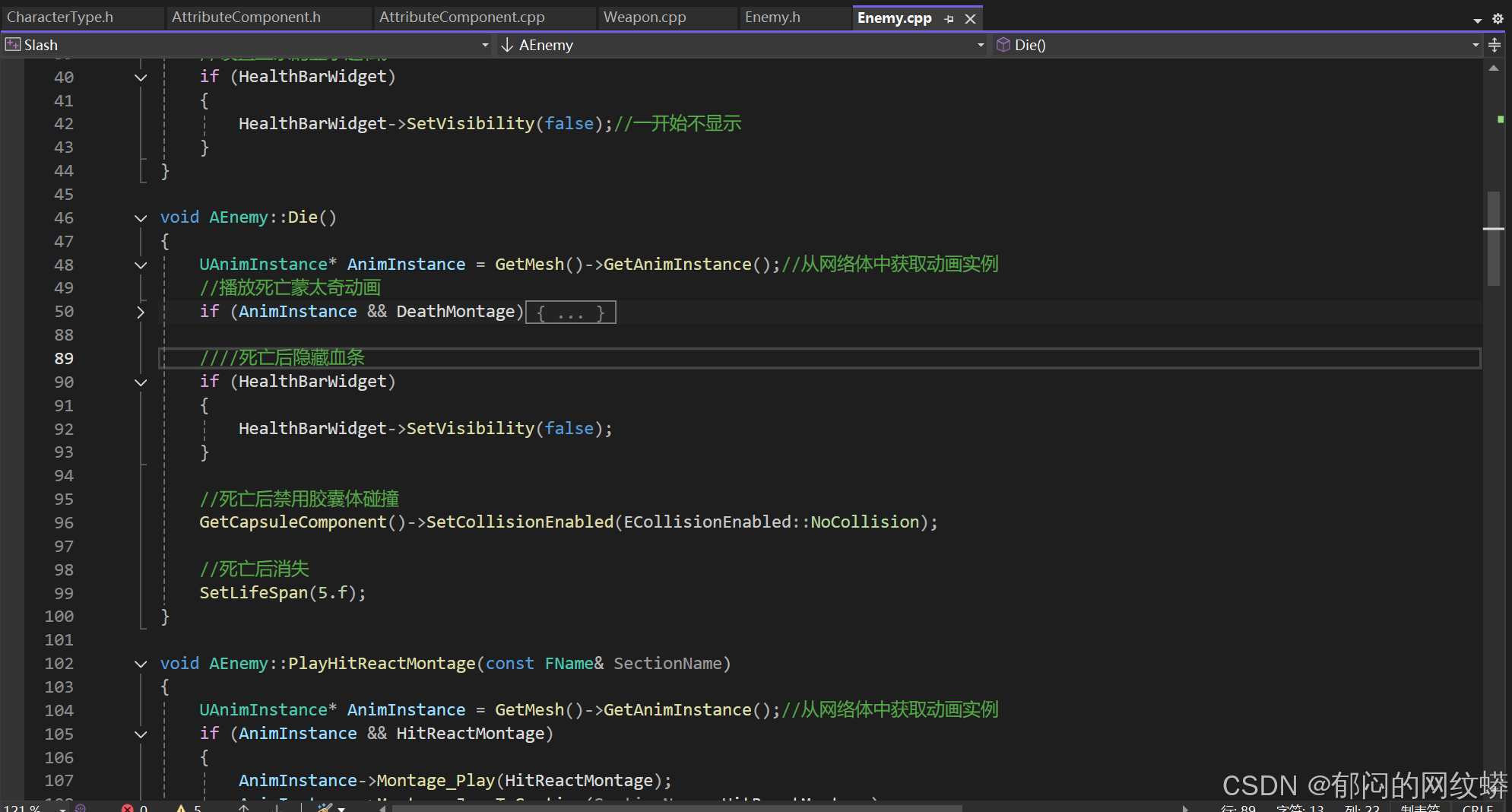 - 在敌人代码里编写逻辑,选择死后播放蒙太奇动画