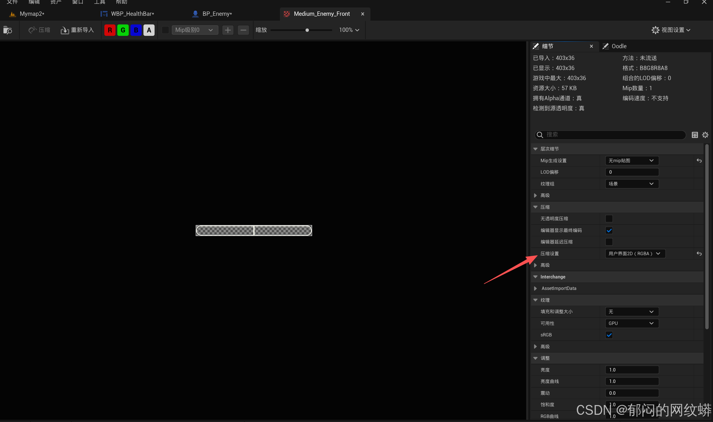 - 下载和导入对应的生命条的.png文件。调整好它们的压缩设置。