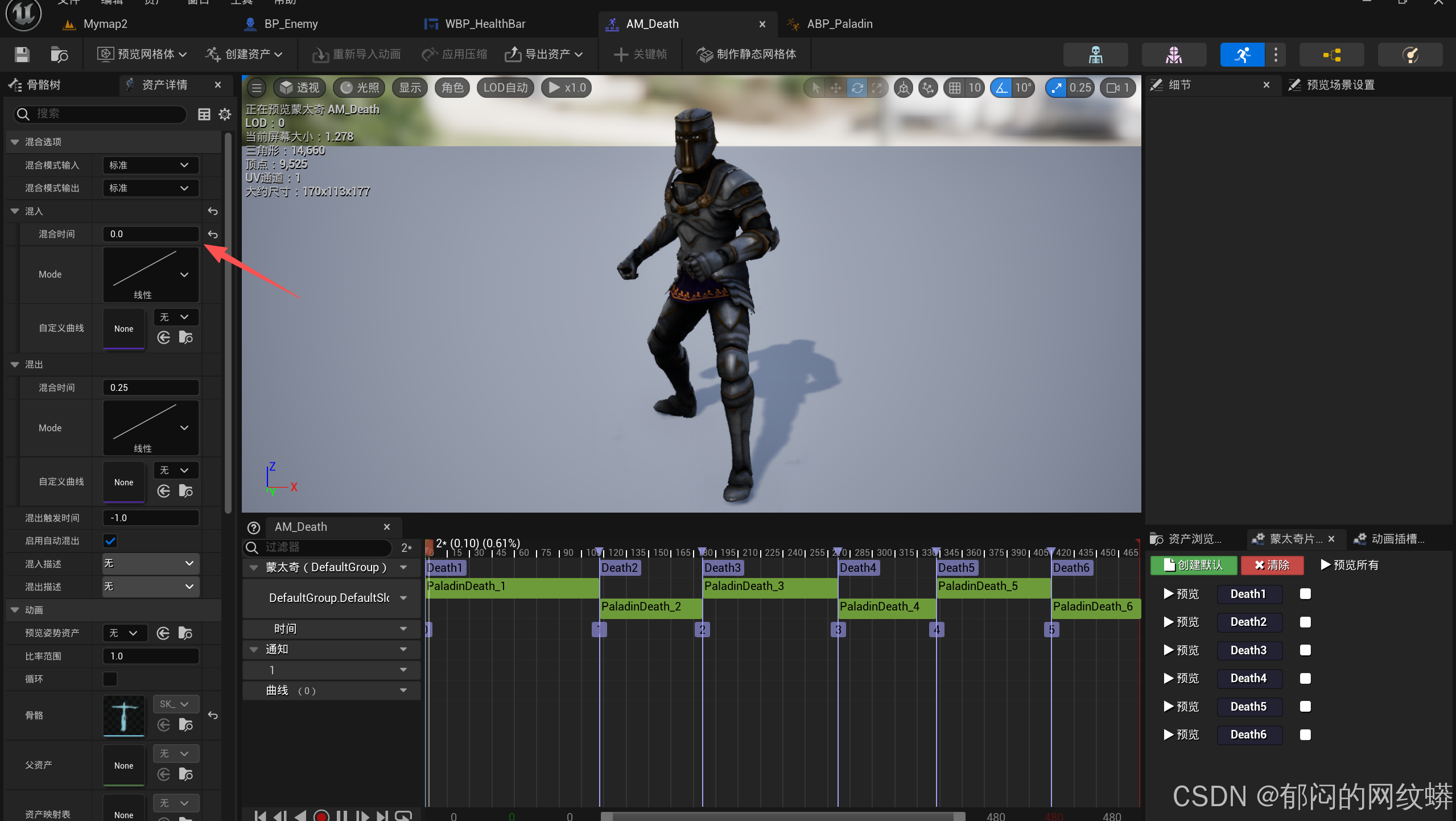 - 混合每个死亡动画。