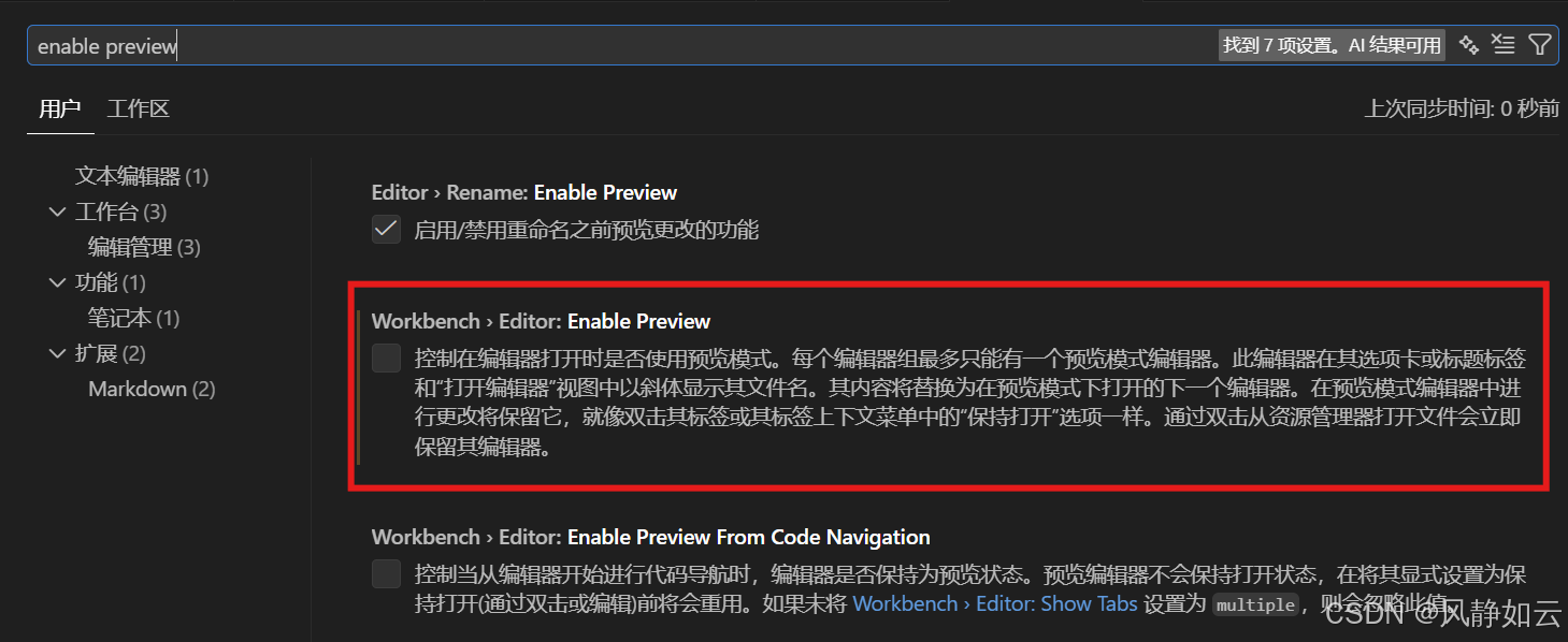 打开设置窗口,搜素enable preview