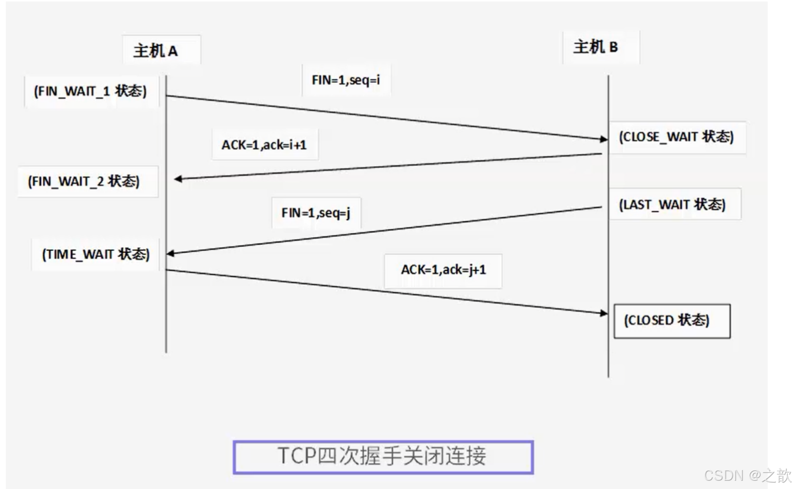 | 四次挥手 | 一方说 FIN,对方先 ACK 再发自己的 FIN,最后再 ACK,保证双向都关干净。 |
