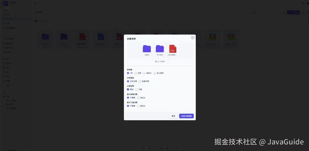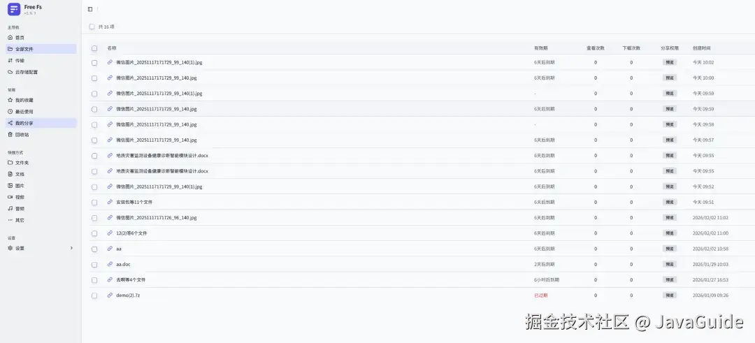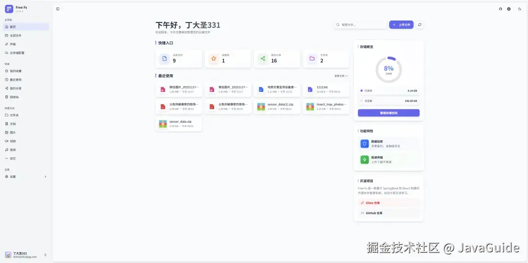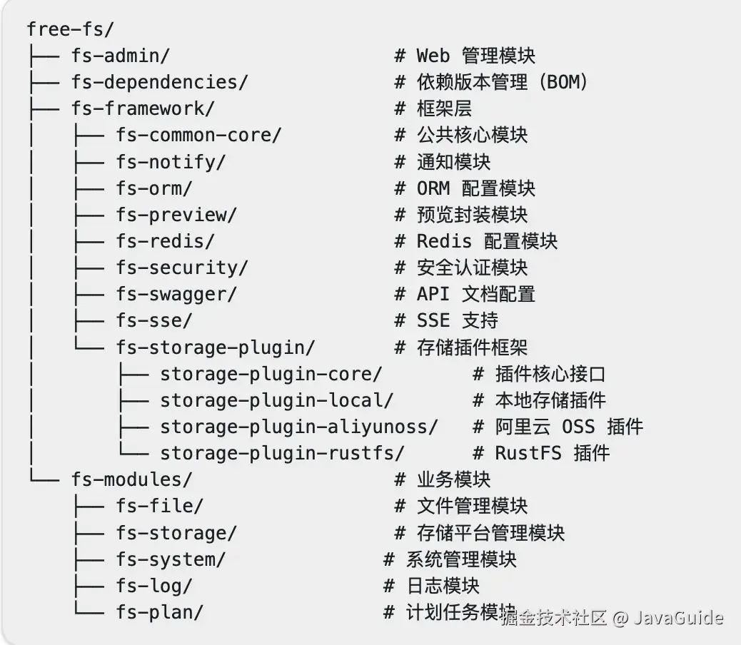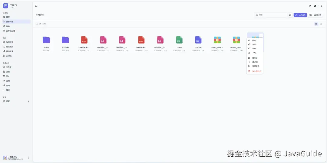 Dromara 开源社区前段时间新进了一个基于 Spring Boot 的文件管理系统 ------ Free-FS,我研究了一下,功能比较完整,架构也清晰,分享给大家(JavaGuide 所有开源项目分享都无商务性质,纯分享,欢迎自荐,地址: github.com/CodingDocs/...