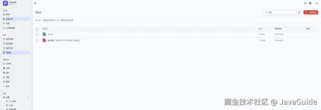 回收站给删除操作一个缓冲区,支持批量还原、永久删除和自动清理。