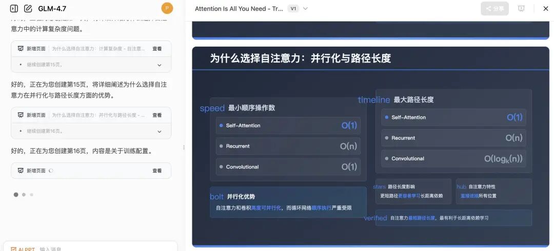 但 GLM-4.7 不一样。它先思考,再行动,而且最牛的是,它会把思考的整个过程保留下来。就像一个真正的资深工程师,在白板上画满了架构图,然后盯着这些图一步步执行,不会中间突然失忆。官方管这叫"保留式思考",我管这叫"终于像个人了"。