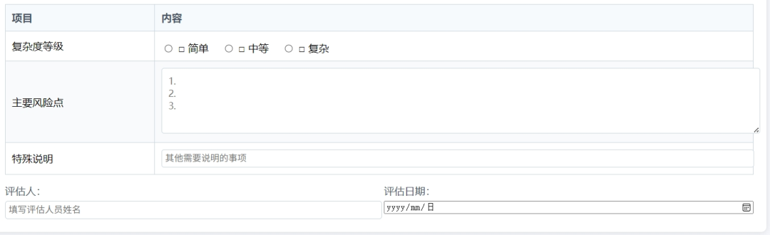 | 复杂度等级 | □ 简单 □ 中等 □ 复杂 |