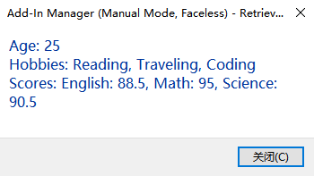 readResult = "修改后数据:\n" + string.Join("\n", readData.Select(d => $"Number: {d.Number}, PlaneType: {d.PlaneType}, XAxis: ({d.XAxis.X}, {d.XAxis.Y}, {d.XAxis.Z})"));