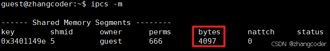 int shmid=shmget(key,4097,IPC_CREAT|0666);