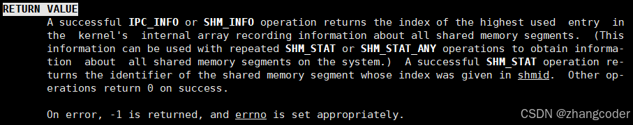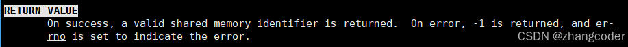 shmget如果执行成功,那么返回"a valid shared memory identifier",即一个有效的共享内存标识符,简称为shmid,如果执行失败,返回-1