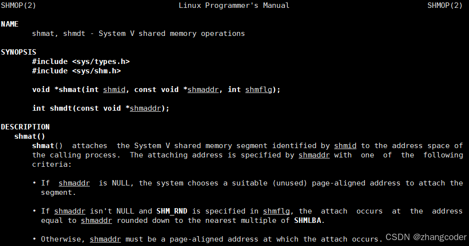 shmflg: 可以控制挂接的共享内存的权限,这里填0,和传入shmget的权限位保持一致