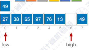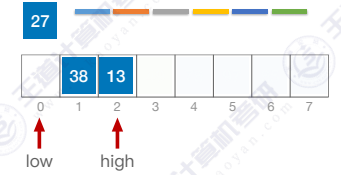 high指针向左移动,找到27比49小,则将27移动到枢轴pivot左边