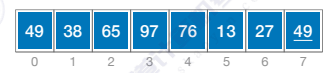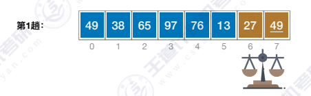 - 第一趟 :选定最左边的第一个元素49作为枢轴pivot,比49小的元素放到左边,比49大的元素放到右边