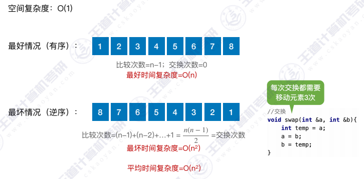 - 基于"交换"的排序:根据序列中两个元素关键字的比较结果来对换这两个记录在序列中的位置