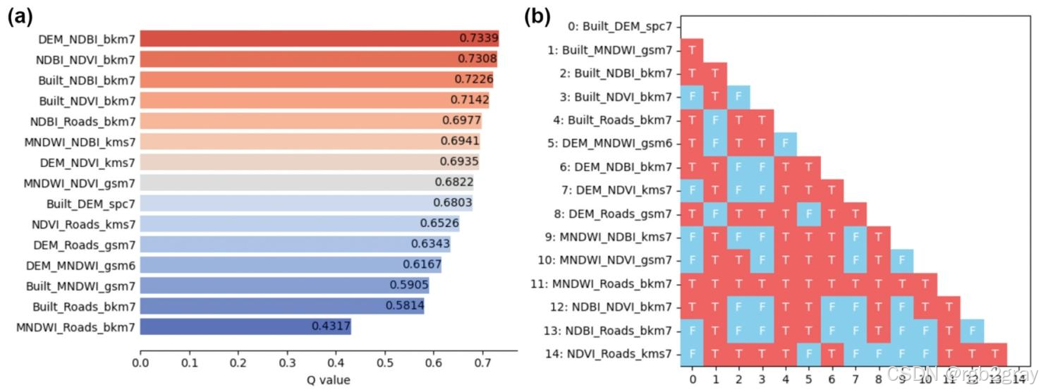 - 交互探测器 (图10c):Built+NDBI(0.786)、MNDWI+NDBI(0.784)、NDBI+Roads(0.779)的交互解释力最强,均为双因子增强。