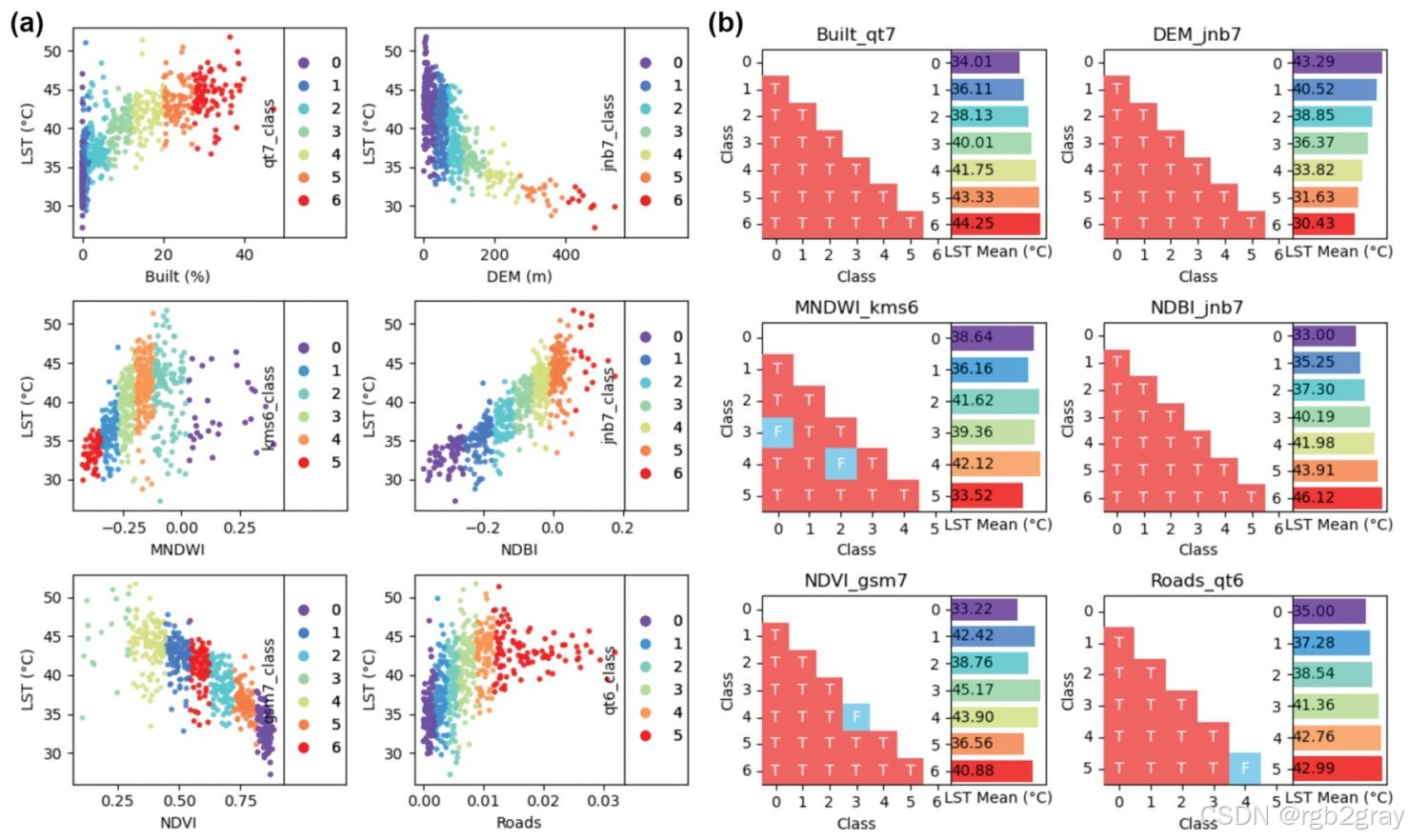 - 风险探测器:层间LST均值差异显著,聚类分层能有效捕捉双因子的组合特征(如Built+DEM组合中,低建筑密度区按高程分层,高建筑密度区按密度分层)。