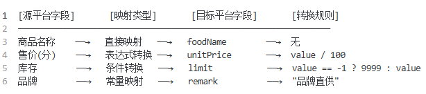 | 便利店 | 高频补货,需关联库存预警 | 扩展字段:replenishThreshold(补货阈值),同步至目标平台备注 |
