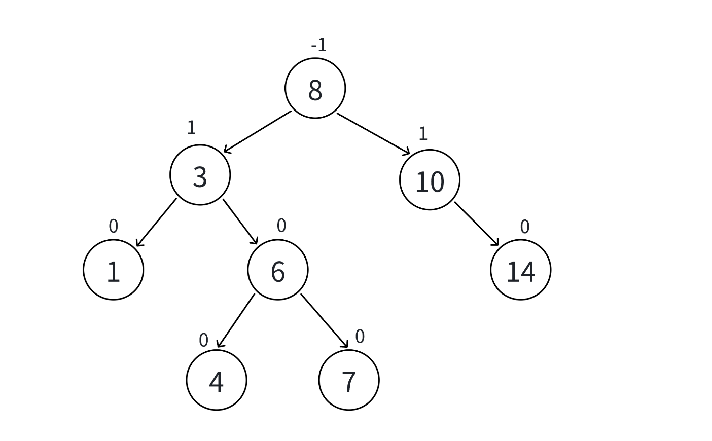 - 平衡因子为 - 1:左子树比右子树高 1 层;