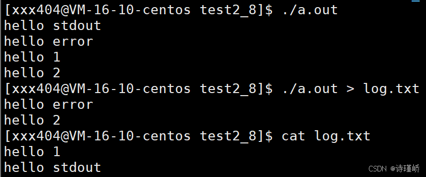 printf、cout默认往这里输出。 - 标准错误 stderr(文件描述符 2) 放报错、警告、异常信息 ,